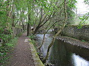 The river was once very polluted, but the lack of local industry nowadays has seen the river become much cleaner and it supports many forms of wildlife throughout its course. Herons, kingfishers and dippers are now a common sight. The river currently has a population of small brown trout and grayling, but they are restricted to certain parts by a number of high weirs left behind from its industrial past.[2]