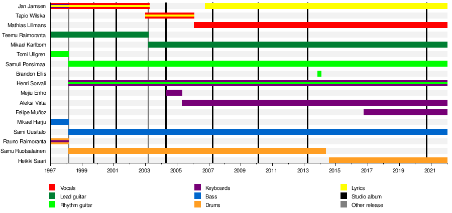 Past members | Mikael Harju Jan Jämsen Rauno Raimoranta Teemu Raimoranta Tomi Ullgren Samu Ruotsalainen Tapio Wilska |