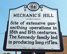 The town, now known as Robbins, actually began in 1795 when gunsmith Alexander Kennedy and his family left Philadelphia to settle along Bear Creek. Kennedy set up a factory, which produced long rifles for American soldiers, near the site of the present day Robbins Water Plant. The Kennedy Rifle Works continued in operation until 1838 and the place became known as Mechanics Hill.