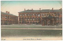 Owing to these advantages, the Harvard–Yenching Institute selected Mathews' dictionary as one of two "practical dictionaries" to revise and reprint in 1943 for "the immediate demands of American students". At this point the supply of Chinese dictionaries had been severely curtailed by the war, leading to an "acute" shortage. The Harvard revision re-titled the dictionary Mathews' Chinese-English Dictionary, and contributes 15,000 correction of errors, revisions of pronunciation and definition, and new entries. In addition, Yuen Ren Chao wrote an introduction on pronunciation.[18] Mathews himself had been working on a revised edition of his dictionary, but when the Japanese occupiers took over the original Shanghai headquarters of the CIM (which had moved headquarters in Shanghai in 1931, and moved to the temporary Republican capital in Chongqing in 1943), unbound copies of Mathews' revision were destroyed, along with printing blocks and the CIM's library.[19][20]