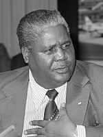 Under the new constitution, Zimbabwe's Presidency was a ceremonial role with no governmental power; the first President was Canaan Banana.[207] Mugabe had previously offered the position to Nkomo, who had turned it down in favour of becoming Minister of Home Affairs.[208] Although working together, there remained an aura of resentment and suspicion between Mugabe and Nkomo.[209] Mugabe gave ZAPU four cabinet seats, but Nkomo demanded more.[210] In contrast, some ZANU-PF figures argued that ZAPU should not have any seats in government, suggesting that Zimbabwe be converted into a one-party state.[211] Tekere and Enos Nkala were particularly adamant that there should be a crackdown on ZAPU.[211] After Nkala called for ZAPU to be violently crushed during a rally in Entumbane, street clashes between the two parties broke out in the city.[212]