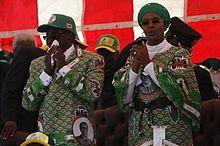 Returning to Salisbury in January 1980, Mugabe was greeted by a supportive crowd.[144] He settled into a house in Mount Pleasant, a wealthy white-dominated suburb.[145] Machel had cautioned Mugabe not to alienate Rhodesia's white minority, warning him that any white flight after the election would cause economic damage as it had in Mozambique.[146] Accordingly, during his electoral campaign Mugabe avoided the use of Marxist and revolutionary rhetoric.[147] Mugabe insisted that in the election, ZANU would stand as a separate party to ZAPU, and refused Nkomo's request for a meeting.[148] He formed ZANU into a political party, known as Zimbabwe African National Union – Patriotic Front (ZANU-PF).[149] Predictions were made that ZANU-PF would win the election on the basis of the country's ethnic divisions; Mugabe was Shona, a community that made up around 70% of the country's population, while Nkomo was Ndebele, a tribal group who made up only around 20%.[150] For many in the white community and in the British government, this outcome was a terrifying prospect due to Mugabe's avowed Marxist beliefs and the inflammatory comments that he had made about whites during the guerrilla war.[122]