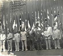 The British government held a Salisbury conference in 1961 to determine Southern Rhodesia's future. Nkomo led an NDP delegation, which hoped that the British would support the creation of an independent state governed by the black majority. Representatives of the country's white minority—who then controlled Southern Rhodesia's government—were opposed to this, promoting continued white-minority rule.[54] Following negotiations, Nkomo agreed to a proposal which would allow the black population representation through 15 of the 65 seats in the country's parliament. Mugabe and others in the NDP were furious at Nkomo's compromise.[55] Following the conference, Southern Rhodesia's African nationalist movement fell into disarray.[56] Mugabe spoke at a number of NDP rallies before the party was banned by the government in December 1961.[57] Many of its members re-grouped as the Zimbabwe African People's Union (ZAPU) several days later,[58] with Mugabe appointed as ZAPU's publicity secretary and general secretary.[59]