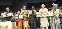 Mugabe took his oath of office on 17 April 1980.[161] He gave a speech at Salisbury's Rufaro Stadium announcing that Rhodesia would be renamed "Zimbabwe" and pledged racial reconciliation.[162] Soames aided Mugabe in bringing about an orderly transition of power; for this Mugabe remained grateful, describing Soames as a good friend.[163] Mugabe unsuccessfully urged Soames to remain in Zimbabwe for several more years,[164] and also failed to convince the UK to assume a two-year "guiding role" for his government because most ZANU-PF members lacked experience in governing.[165] Although ZANU-PF's absolute parliamentary majority allowed them to rule alone, Mugabe created a government of national unity by inviting members of rival parties to join his cabinet.[166] Mugabe moved into the Premier's residence in Harare, which he left furnished in the same style as Smith had left it.[167]