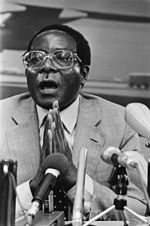 Mugabe focused on the propaganda war, making regular speeches and radio broadcasts.[102] In these, he presented himself as a Marxist-Leninist, speaking warmly of Marxist-Leninist revolutionaries like Vladimir Lenin, Joseph Stalin, and Fidel Castro.[110] Despite his Marxist views, Mugabe's meetings with Soviet representatives were unproductive, for they insisted on Nkomo's leadership of the revolutionary struggle.[117] His relationship with the People's Republic of China was far warmer, as the Chinese Marxist government supplied ZANLA with armaments without any conditions.[118] He also sought support from Western nations, visiting Western embassies in Mozambique,[119] and travelled to both Western states like Italy and Switzerland and Marxist-governed states like the Soviet Union, China, North Korea, Vietnam, and Cuba.[120]
