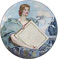 His murals for the Palace of Fine Arts building at the Panama–Pacific International Exposition (San Francisco, 1915) were an extraordinary tribute to the Arts. Eight huge panels graced the ceiling of the rotunda: The Four Golds of California (Golden Metal, Wheat, Citrus Fruits, and Poppies); plus Ideals in Art, Inspirations of All Arts, the Birth of European Art and Birth of Oriental Art[3] These paintings no longer exist in San Francisco's Palace of Fine Arts, which was re-built in the 1960s, and their current whereabouts are unknown.