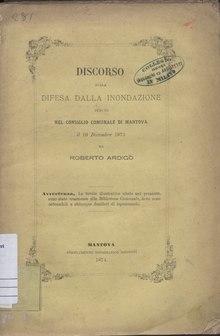 - Discorso sulla difesa dalla inondazione. Mantova: Stabilimento tipografico Mondovì. 1874.