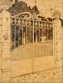 During his lifetime, Montenegro had good relationships with various writers including José Juan Tablada and Luis G. Urbina working with Revista Moderna. In France he collaborated with Le Temoin and in Madrid with Ramón del Valle-Inclán. In Mexico, he associated with a number of writers for a publication called Los Contemporáneos from 1928 to 1931 which included Carlos Pellicer, José Gorostiza and Salvador Novo.[9] The first publication he worked with was Revista Moderna de México, directed by Jesús E. Valenzuela.[6] He began while still living in Guadalajara at age sixteen sending vignettes and drawings for illustrations. He would continue to work with them after he arrived in Mexico City until 1911.[2][3] He had a number of publications in Europe. In 1910, he published twenty drawing in an album called Vingt Dessins with a prologue by Henri de Régnier.[6][10] In 1917, his illustrations were in a children's version of Aladdin published in Barcelona.[6] In 1919, he published a book of drawings called Vaslav Nijinsky: and interpretation of his work in Black-white and gold by Robert Montenegro.[11] In 1933 he published Pintura mexicana (1800–1860) dedicated to the painters of Jalisco. In 1950, he published research on altarpieces called Retablos de México.[12] In 1952 he published an album of twenty drawings with a prologue by Alfonso Reyes.[6]