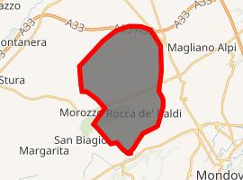 Rocca de' Baldi borders the following municipalities: Magliano Alpi, Mondovì, Morozzo, and Sant'Albano Stura.