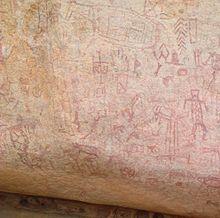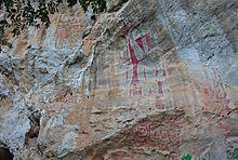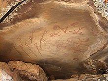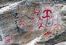 The term rock art appears in the published literature as early as the 1940s.[3][4] It has also been described as "rock carvings",[5] "rock drawings",[6] "rock engravings",[7] "rock inscriptions",[8] "rock paintings",[9] "rock pictures",[10] "rock records",[11] and "rock sculptures.[12][13]