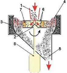 In industry, crushers are machines which use a metal surface to break or compress materials into small fractional chunks or denser masses. Throughout most of industrial history, the greater part of crushing and mining part of the process occurred under muscle power as the application of force concentrated in the tip of the miners pick or sledge hammer driven drill bit. Before explosives came into widespread use in bulk mining in the mid-nineteenth century, most initial ore crushing and sizing was by hand and hammers at the mine or by water powered trip hammers in the small charcoal fired smithies and iron works typical of the Renaissance through the early-to-middle industrial revolution. It was only after explosives, and later early powerful steam shovels produced large chunks of materials, chunks originally reduced by hammering in the mine before being loaded into sacks for a trip to the surface, chunks that were eventually also to lead to rails and mine railways transporting bulk aggregations that post-mine face crushing became widely necessary. The earliest of these were in the foundries, but as coal took hold the larger operations became the coal breakers that fueled industrial growth from the first decade of the 1600s to the replacement of breakers in the 1970s through the fuel needs of the present day. The gradual coming of that era and displacement of the cottage industry based economies was itself accelerated first by the utility of wrought and cast iron as a desired materials giving impetus to larger operations, then in the late-sixteenth century by the increasing scarcity of wood lands for charcoal production to make the newfangled window glass[2] material that had become—along with the chimney— 'all the rage' among the growing middle-class and affluence of the sixteenth-and-seventeenth centuries;and as always, the charcoal needed to smelt metals, especially to produce ever larger amounts of brass and bronze,[3] pig iron, cast iron and wrought iron demanded by the new consumer classes. Other metallurgical developments such as silver and gold mining mirrored the practices and developments of the bulk material handling methods and technologies feeding the burgeoning appetite for more and more iron and glass, both of which were rare in personal possessions until the 1700s.