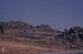 It was first believed that rock firefinches were only endemic to the Jos Plateau in central Nigeria, but observations were also reported in northern Cameroon, which borders eastern Nigeria. Rock firefinches are considered to be range-restricted, since they are mostly found in the Jos Plateau. The Jos Plateau is a rocky habitat with a semi-temperate climate with temperatures ranging from 60-80 degrees Fahrenheit. There is a distinct dry season from November to April and rainy season from May to October.[4] Rock firefinches prefer inselbergs in bush savannah habitats and rocky outputs to build their nests in.[5] Inselbergs are isolated hills or mountains that arise from a flat plain. Regardless of the season, rock firefinches live in inselbergs and avoid farmland areas. Rock firefinches have high site fidelity, habitually returning to the same area throughout the whole year.[4] During the dry season, rock firefinches have larger home ranges as a result of traveling to gallery forests to attain water. During the wet season, rock firefinches do not need to travel to distant water resources and therefore have a smaller home range.