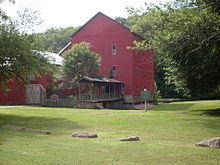 This community is in a karst region, with caves, springs, and natural stone bridges nearby. The springs include four springs which feed the mill pool and Morris Spring which forms a small pool along the road below the dam. The Rockbridge spring has a flow of 19.1 cubic feet per second (0.54 m3/s) and the Morris Spring has a flow of 3.6 cubic feet per second (0.10 m3/s). The springs flow from the contact between the Roubidoux sandstone and the underlying Gasconade dolomite.[5]