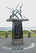 On 9 September 2005, a memorial was unveiled at Palm Beach, Rockingham, to commemorate the Catalpa rescue, the famous escape of six Irish Fenian convicts from Fremantle Prison on 17–18 April 1876. After journeying south from Fremantle by horse-drawn cart, the escapees were rowed from the beach to the Catalpa, an American whaler. The perilous flight succeeded in the face of an overnight storm and naval interception at dawn. The memorial consists of six wild geese in flight symbolic of the flight to freedom and, to all Irish people, emigration. This is mounted on a plinth built with stones from ship's ballast. Mounted on the plinth are six granite panels sandblasted with photos of the six Fenian prisoners and a granite dedication stone. At the outer circumference of the circle there are six bronze plaques bearing text inscriptions from the Wild Goose Journal which the Fenians had written on board the Hougoumont as prisoners on their voyage to Australia. Creation of the memorial was initiated and documented by Francis Conlan and executed by Joan Walsh-Smith and Charles Smith.[15] Historical information was sourced from The Fenian Wild Geese: from the last convict ship to the Catalpa rescue by Ormonde D. P. Waters (Catalpa Publications, 2011).