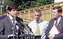 In the general election, Blagojevich defeated Republican Illinois Attorney General Jim Ryan.[20] Blagojevich's campaign was helped by his well-connected father-in-law, Chicago alderman Richard Mell.[20] Ethics scandals had plagued the previous administration of Republican George Ryan (no relation to Jim Ryan), and Blagojevich's campaign focused on the theme of "ending business as usual" in state government.[30] Polls prior to the election found that many Illinois voters were confused about the names of George Ryan and Jim Ryan, a fact which Blagojevich used to his advantage.[31] He asked, "How can you replace one Ryan with another Ryan and call that change? You want change? Elect a guy named Blagojevich."[31] Blagojevich won with 52% of the vote over Jim Ryan.[31] On election night, he said: "Tonight, ladies and gentlemen, Illinois has voted for change."[30]