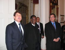 Another notable action of his term was a strict new ethics law. When campaigning for re-election in 2006, Blagojevich said that if his ethics law had existed when former governor George Ryan had been in office, Ryan's corruption might not have occurred.[42] Blagojevich also signed a comprehensive death penalty reform bill that was written by then-Senator Barack Obama and the late U.S. Senator Paul M. Simon. Organized labor and African Americans were Blagojevich's staunchest political supporters.[34] In 2008, he told a group of African-Americans that he sometimes considered himself the first African American governor of Illinois.[45]