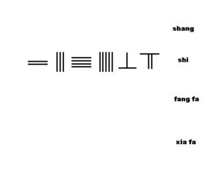 - Arrange the coefficients in tabular form, constant at shi, coeffienct of x at shang lian, the coeffiecnt of X^4 at yi yu;align the numbers at unit rank.