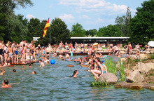 The centrally located outdoor swimming pool is open during the weekends of summer months. It is considered eco-friendly due to the utilisation of aquatic plants and haydite, a rock to which friendly bacteria attach, acting as biological cleansers. Its own waterfall, aside providing a base for those who wish to jump into the water from a height, oxygenates the pool and acts as a return. A kiosk offers all the delights of a typical German snack bar or Schnellimbis and there are also ample other features available such as; water slides, pontoons, dedicated sun bathing area, ball games and changing facilities.