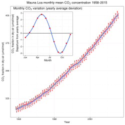- ^ Revelle, Roger; Suess, Hans E. (1957). "Carbon Dioxide Exchange Between Atmosphere and Ocean and the Question of an Increase of Atmospheric CO2during the Past Decades". Tellus. Informa UK Limited. 9 (1): 18–27. Bibcode:1957TellA...9...18R. doi:10.1111/j.2153-3490.1957.tb01849.x. ISSN 0040-2826. (Manusript received September 4, 1956).
