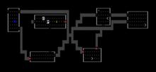The player generally has to explore the dungeon to reveal its contents, similar to a fog of war. Many roguelikes include visibility elements, such as a torch to provide illumination to see monsters in nearby squares, or line of sight to limit which monsters are visible from the player's position. Dungeons tend to be connected by stairs; lower dungeon levels generally are more difficult than higher ones, so that an underdeveloped character will have difficulty progressing too fast. Dungeon levels and the population of monsters and treasure within them are generated randomly using procedural generation, so no game is the same on subsequent playthroughs. Most roguelikes have an ultimate goal of either claiming an item located at the deepest level of the dungeon, or defeating a specific monster that lives on that level.[9] Typical roguelikes assess the player's performance at the end of the game through a score based on the amount of treasure, money, and experience earned, and how fast the player finished the game, if they managed to do so. The score is displayed in a ranked scoreboard to compare the player's performance on successive runs.[10]