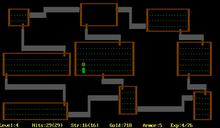 Hack (1982) was developed by Jay Fenlason with help from Kenny Woodland, Mike Thome, and Jonathan Payne, students at Lincoln-Sudbury Regional High School at the time, while participating in the school's computer lab overseen by Brian Harvey.[49] Harvey had been able to acquire a PDP-11/7 minicomputer for the school and instituted a course curriculum that allowed students to do whatever they wanted on the computers, including playing games, as long as they had completed assignments by the end of each semester. Fenlason, Woodland, Thome, and Payne met through these courses and became a close group of friends and competent programmers.[49] Harvey had invited the group to the computer labs at UC Berkeley where they had the opportunity to use the mainframe systems there, and were introduced to Rogue, inspiring them to create their own version as their class project. Fenlason had created a list of features they wanted to improve upon in Rogue such as having a level's layout saved once the player moved off that level. They approached Toy and Arnold at a local USENIX conference for the source code to Rogue, but were refused, forcing them to develop the routines from scratch.[49] The resulting program, Hack, stayed true to the original Dungeons and Dragons influences, and derived its name from being both a "hack and slash" game as well as a programming hack to recreate Rogue without having access to its source code.[49] Fenlason was not able to include all the desired features, and his involvement in Hack's development concluded after the students had left the school. Fenlason had provided the source code to Hack to the USENIX conferences to be distributed on their digital tapes, from which it was later discovered and built upon through USENET newsgroups, porting it to various systems. Like Angband, the maintainership of the Hack code passed through several hands, and some variants were created by different forks.[21]