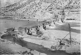 A Roller dam is a type of hydro-control device specially designed to mitigate erosion. They are most often used to divert water for irrigation but the largest and most notable examples are used to ease river navigation. The world's first roller dam (German: walzenwehr) was constructed in Schweinfurt, Germany in 1902 to divert irrigation water south of the Main river.[1][2]