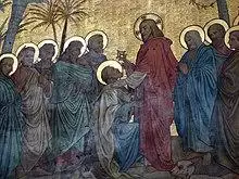 The New Testament, in particular the Gospels, records Jesus' activities and teaching, his appointment of the Twelve Apostles]] and his Great Commission of the apostles, instructing them to continue his work.[36][37] The book Acts of Apostles, tells of the founding of the Christian church and the spread of its message to the Roman empire.[38] The Catholic Church teaches that its public ministry began on Pentecost, occurring fifty days following the date Christ is believed to have resurrected.[39] At Pentecost, the apostles are believed to have received the Holy Spirit, preparing them for their mission in leading the church.[40][41] The Catholic Church teaches that the college of bishops, led by the Bishop of Rome are the successors to the Apostles.[42]