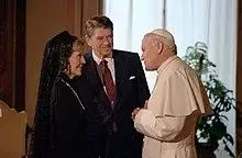 John Paul II sought to evangelize an increasingly secular world. He instituted World Youth Day as a "worldwide encounter with the pope" for young people; it is now held every two to three years.[158] He travelled more than any other pope, visiting 129 countries,[159] and used television and radio as means of spreading the church's teachings. He also emphasised the dignity of work and natural rights of labourers to have fair wages and safe conditions in Laborem exercens.[160] He emphasised several church teachings, including moral exhortations against abortion, euthanasia, and against widespread use of the death penalty, in Evangelium Vitae.[161]