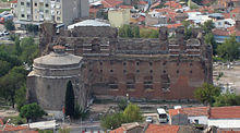 The Romans perfected brick-making during the first century of their Empire and used it ubiquitously, in public and private construction alike. The mass production of Roman bricks led to an increase in public building projects.[2] Over time the public and private relationship diminished as the brick business turned into an imperial monopoly.[2] The Romans took their brickmaking skills everywhere they went, introducing the craft to the local populations.[7] The Roman legions operated mobile kilns and introduced bricks to many parts of the empire. The bricks became time records and geographical pinpoints to where the Roman military was operating.[3] Roman bricks are often stamped with the mark of the legion that supervised their production. Roman brick was used to construct famous architecture such as the Red Basilica in Pergamon, Domus Tiberiana in Rome, and the Basilica of Maxentius in Rome.[8][2] The use of bricks in southern and western Germany, for example, can be traced back to traditions already described by the Roman architect Vitruvius, although he probably refers to mud brick. In the British Isles, the introduction of Roman brick by the Ancient Romans was followed by a 600–700 year gap in major brick production.