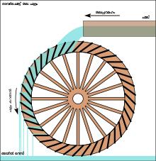 Power from water was generated through the use of a water wheel. A water wheel had two general designs: the undershot and the overshot. The undershot water wheel generated power from the natural flow of a running water source pushing upon the wheel’s submerged paddles. The overshot water wheel generated power by having water flow over its buckets from above. This was usually achieved by building an aqueduct above the wheel. Although it is possible to make the overshot water wheel 70 percent more efficient than the undershot, the undershot was generally the preferred water wheel. The reason being, the economic cost to building an aqueduct was too high for the mild benefit of having the water wheel turn faster. The primary purpose of water wheels were to generate power for milling operations and to raise water above a system’s natural height. Evidence also exists that water wheels were used to power the operation of saws, though only scant descriptions of such devices remain.[3]