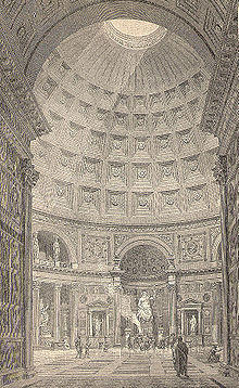 Cements were essential to the design of the Pantheon. The mortar used in the construction of the dome is made up of a mixture of lime and the volcanic powder known as, pozzolana. The concrete is suited for the use in constructing thick walls as it does not require to be completely dry in order to cure.[8]