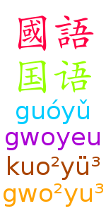- Gwoyeu Romatzyh (GR, 1928–1986, in Taiwan 1945–1986; Taiwan used Japanese Romaji before 1945),