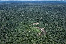 The Brazilian Indian Agency, (FUNAI) estimates the state's indigenous population at 30,715.[6] The largest indigenous groups are the Macuxi (16,500)[7] and the better-known Yanomami (11,700).[8] Much of the state's indigenous population lives in several large, legally recognized indigenous reserves and a number of smaller ones, totalling 46.13% of the land area of the state.[9]