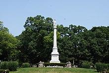 Rosehill Cemetery (founded 1859) is an American urban cemetery on the North Side of Chicago, Illinois, and at 350 acres (1.4 km2), is the largest cemetery in the City of Chicago. According to legend, the name "Rosehill" resulted from a City Clerk's error – the area was previously called "Roe's Hill", named for nearby farmer Hiram Roe. He refused to sell his land to the city until it was promised that the cemetery be named in his honor.[2] It is located in the north east section of the Lincoln Square community area.