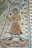 There are two other historic churches in central Roskilde. St Ib's is located below the cathedral plateau near the harbour. Built in travertine around 1100, the Romanesque building was once richly decorated in frescos, remains of which can be seen on the rear wall. It is no longer a functioning church.[69][70] St Jørgensbjerg Church stands on a little hill to the northwest of the old town, overlooking the fjord. With a nave and chancel in travertine dating from c. 1080, it is Denmark's oldest preserved stone building. It features a carved pulput from 1616.[71][72] The Sankt Laurentii Church Tower is all that remains of the Romanesque Sankt Laurentii Church, built of travertine in the 13th century. It was torn down after the Reformation leaving only the tower which was built at the beginning of the 16th century and now forms part of the former town hall on Stændertorvet.[73] It contains a museum where archaeological finds from 1998 can be seen.[74]