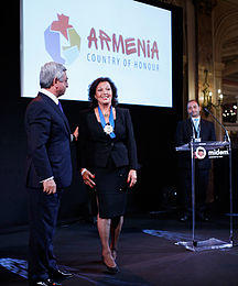 During MIDEM 2015 in Cannes, Armenia was honored to mark the centennial of the Genocide 24 April 1915, Rosy Armen received the Legion of Honor from the hands of the President of Armenia, Serzh Sargsyan.