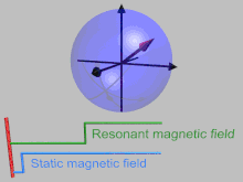 It is convenient to consider magnetic resonance in a frame that rotates at the Larmor frequency of the spins. This is illustrated in the animation below. The rotating wave approximation may also be used.