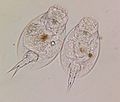 Like many other microscopic animals, adult rotifers frequently exhibit eutely—they have a fixed number of cells within a species, usually on the order of 1,000.