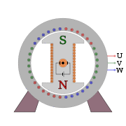 The rotor is a moving component of an electromagnetic system in the electric motor, electric generator, or alternator. Its rotation is due to the interaction between the windings and magnetic fields which produces a torque around the rotor's axis.[1]