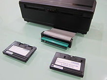 The Wafadrive comprised two continuous loop "stringy floppy" tape drives, an RS-232 interface and Centronics parallel port. The drives could run at two speeds: High speed (for seeking) and low speed (for reading/writing, which was significantly slower than that of Microdrives). The cartridges (or "wafers"), the same as those used in Entrepo stringy floppy devices for other microcomputers, were physically larger than Microdrive cartridges. They were available in three different capacities, nominally 16 kB, 64 kB or 128 kB. The larger sizes had the disadvantage of slower access, due to the longer length of tape.