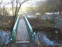 It begins as the Calder Water at its source at Ardochrig, and is joined by the Cleughearn, Lea and Drumloch Burns around Langlands Moss which drain from the Eldrig Hills.[1] This river has also been titled the 'West' or 'South Calder Water', although the latter title is shared by another river in Motherwell. Upon being joined by the Rotten Burn to the south-east of East Kilbride, the river becomes the Rotten Calder Water. 'Water' is a term used in Scotland to denote a small river.