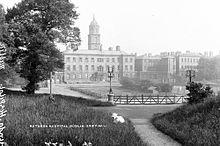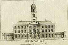 The hospital was founded by Bartholomew Mosse, a surgeon and midwife who was appalled at the conditions that pregnant women had to endure, in George's Lane in March 1745.[4] It was granted by Royal Charter on 2 December 1756 by King George II.[5] Lying-in is an archaic term for childbirth (referring to the month-long bed rest prescribed for postpartum confinement).[6] The venture was very successful and Mosse raised money through concerts, exhibitions and even a lottery to establish larger premises.[7] The hospital moved to new premises, designed by Richard Cassels,[8] where it became known as "The New Lying-In Hospital" in December 1757.[9] The Church of Ireland Chapel was opened in 1762.[10] Open to the public, it provided a healthy income to the hospital annually, Dr. Mosse successfully encouraging wealthy Protestant Dubliners to attend service there.[11][12]