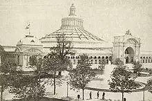 The Rotunde (German: [roˈtʊndə]) in Vienna was a building erected for the Weltausstellung 1873 Wien (the Vienna World Fair of 1873). The building was a partially covered circular steel construction, 84 m (approx. 275 ft) in height and 108 m (approx. 354 ft) in diameter. For almost one century (followed after its own destruction by an exhibition hall in Belgrade, 1957) it was the largest cupola construction in the world, larger than the Pantheon in Rome (diameter 43,4 m); built in 118–125. It was designed by Austrian architect Karl Freiherr von Hasenauer and built by the German company Johann Caspar Harkort of Duisburg. The Scottish engineer for the roof was John Scott Russell who used 4,000 tons of steel with no ties.[1]