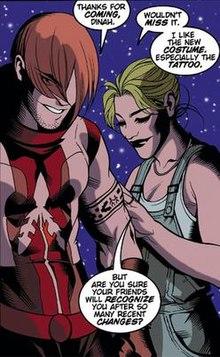 Shortly after, Roy joined the rest of the original five Titans (now known as Nightwing, Arsenal, Troia, The Flash, and Tempest) in reforming the Titans team for a new generation.[13] He resided in Titans Tower, with his daughter Lian. Roy took on a mentorship role to Grant Emerson, the younger hero known as Damage, who Roy recruited in his tenure as leader. He became a father figure to him, seeing a younger version of himself in Grant. It was also during this time that Roy found out he had a living relative in the form of Jim Harper, the clone of his great uncle.[14]