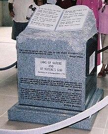 [The monument] serves to remind the Appellate Courts and judges of the Circuit and District Court of this State and members of the bar who appear before them, as well as the people of Alabama who visit the [Heflin-Torbet Judicial Building], of the truth stated in the Preamble to the Alabama Constitution that in order to establish justice we must invoke 'the favor and guidance of almighty God'.[37]