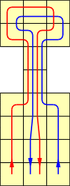 The object of the game is for a player to move all seven of their pieces along the course (two proposed versions of which are shown at right) and off the board before their opponent.[4] On all surviving gameboards, the two sides of the board are always identical with each other, indicating that the two sides of the board belong to each player.[3] When a piece is on one of the player's own squares, it is safe from capture,[4] but, when it is on one of the eight squares in the middle of the board, the opponent's pieces may capture it by landing on the same space, sending the piece back off the board so that it must restart the course from the beginning.[4] This means there are six "safe" squares and eight "combat" squares.[4] There can never be more than one piece on a single square at any given time, so having too many pieces on the board at once can impede a player's mobility.[4]