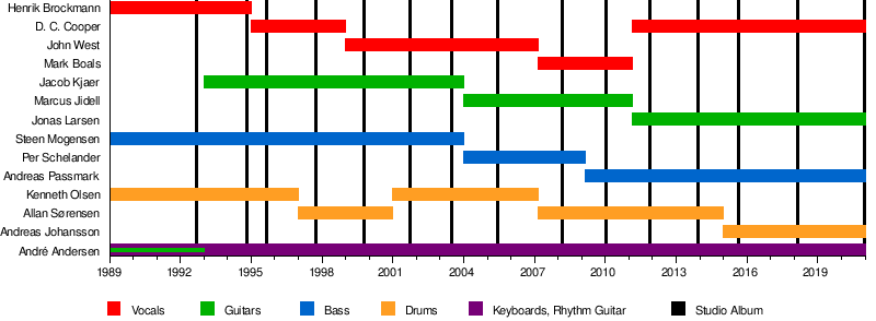 | Past members | Marcus Jidell John West Mark Boals Henrik Brockmann Steen Mogensen Jacob Kjaer Kenneth Olsen Per Schelander Allan Sørensen |