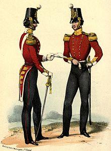 The regiment was increased to two battalions in 1799 and both battalions took part in the Anglo-Russian invasion of Holland, being present at the Battle of Bergen in September 1799[24] and the Battle of Alkmaar in October 1799,[25] before the second was disbanded in 1802.[25] In 1804 the regiment moved to India,[25] and remained there until 1823.[26] In 1825 the regiment was granted the badge of a "royal tiger" to recall their long service in the sub-continent.[27] The Regiment was posted to New South Wales from 1830 to 1836.[28]