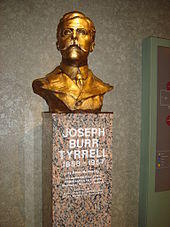 The Provincial Museum of Alberta's palaeontology program, including its collection, and a large portion of its staff, was spun-off in 1981 in preparation for the opening of the new museum.[4][6] The staff of the future palaeontology museum worked in a temporary office space in downtown Edmonton until 1982, when they were relocated to another temporary office, laboratory, and workshop in Drumheller.[4] Prior to opening, the museum's informal working name was the Palaeontological Museum and Research Institute, although it was changed by Baird to the Tyrrell Museum of Palaeontology, in honour of Joseph Tyrrell, a geologist of the Geological Survey of Canada.[4] Tyrrell accidentally discovered the first reported dinosaur fossil at the Red Deer River valley, while searching for coal seams in 1884.[7]