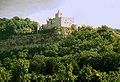 The Rudelsburg is a ruined hill castle located on the east bank of the river Saale above Saaleck, a village in the borough of Naumburg in the county of Burgenlandkreis in Saxony-Anhalt, Germany. The Rudelsburg was built in the Middle Ages by the Bishop of Naumburg and served to secure trade routes such as the Via Regia through the Saale Valley.